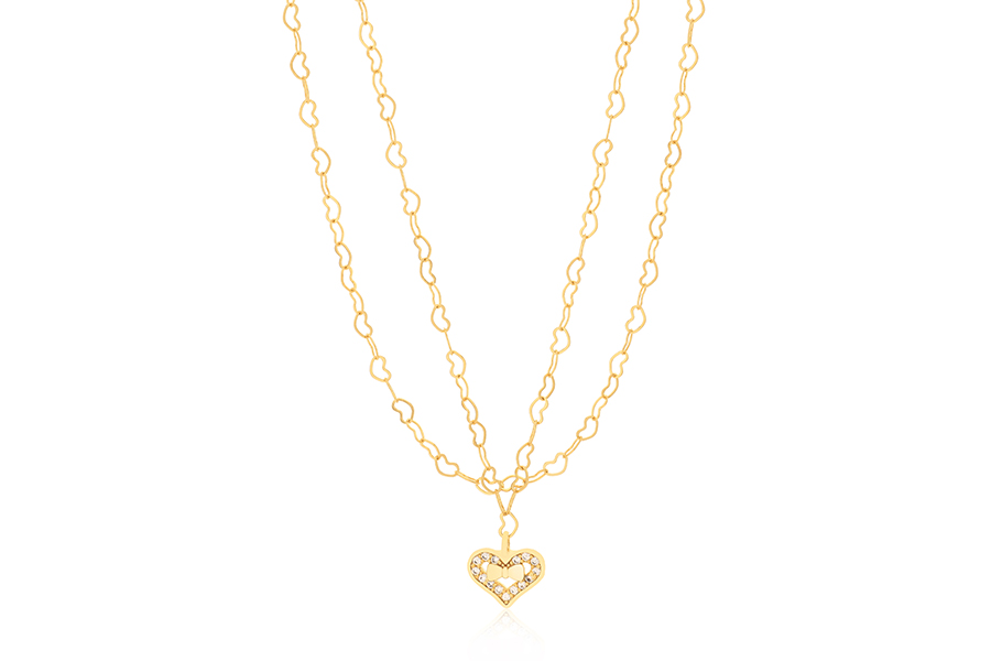 GARGANTILHA BANHADA EM OURO, ELO 1,50mm ESPESSURA, DUPLO PONTO DE LUZ 5mm E CORAÇÃO PATA 15,50mm LARGURA