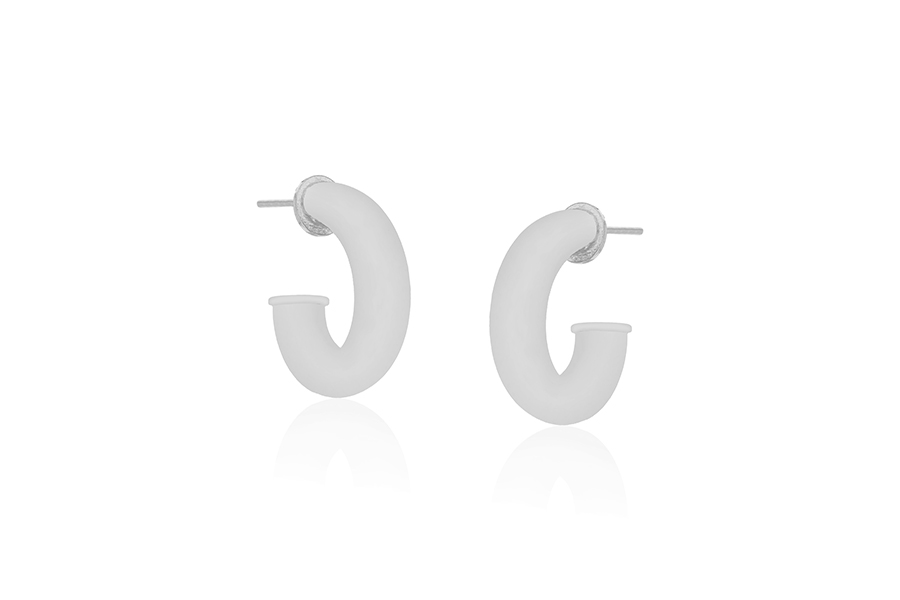 BRINCO BANHADO EM RÓDIO BRANCO, ARGOLINHA 12mm DIÂMETRO, COM 18 ZIRCÔNIAS