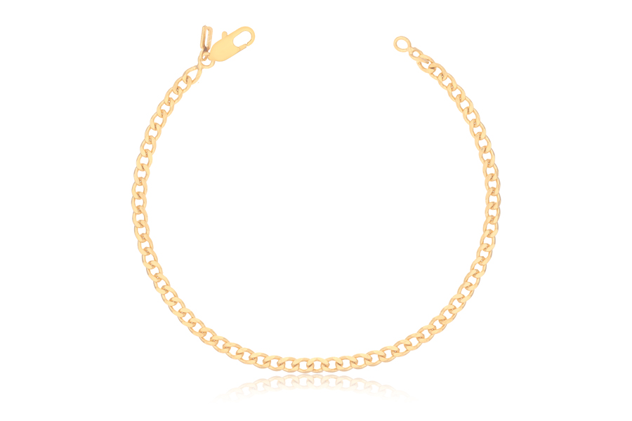 PULSEIRA BANHADA EM OURO, CORDA 4mm, EXTENSOR 5cm COMPRIMENTO E PESO 9,10g, 18cm