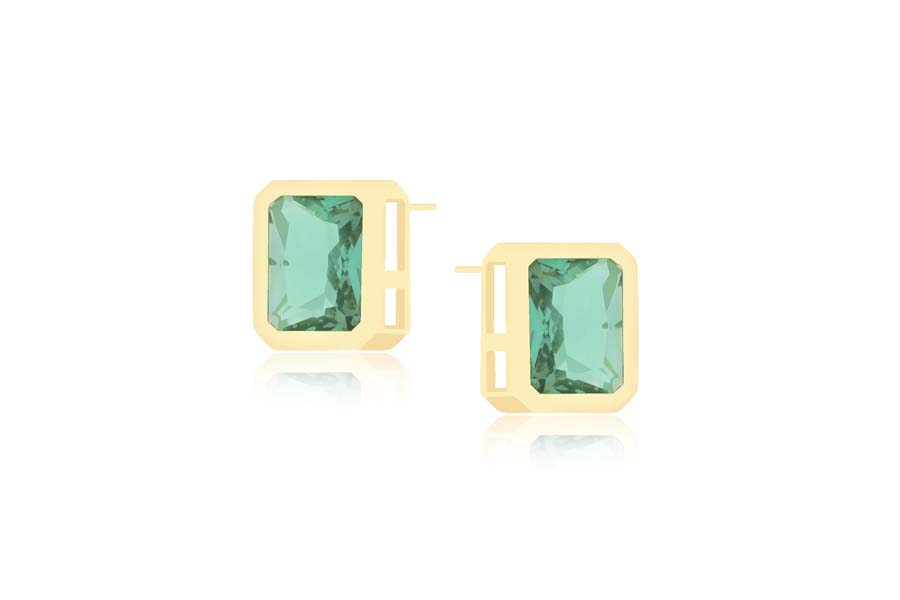 BRINCO BANHADO EM OURO, CRISTAL FUSION RETANGULAR 10x8mm
