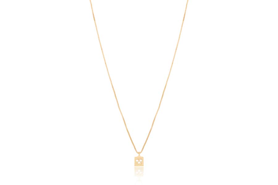GARGANTILHA BANHADA EM OURO, ELO VENEZIANA 0,80mm, 40cm COMPRIMENTO, EXTENSOR 5cm COMPRIMENTO E TREVO 9mm LARGURA, COLEÇÃO ÍCONES