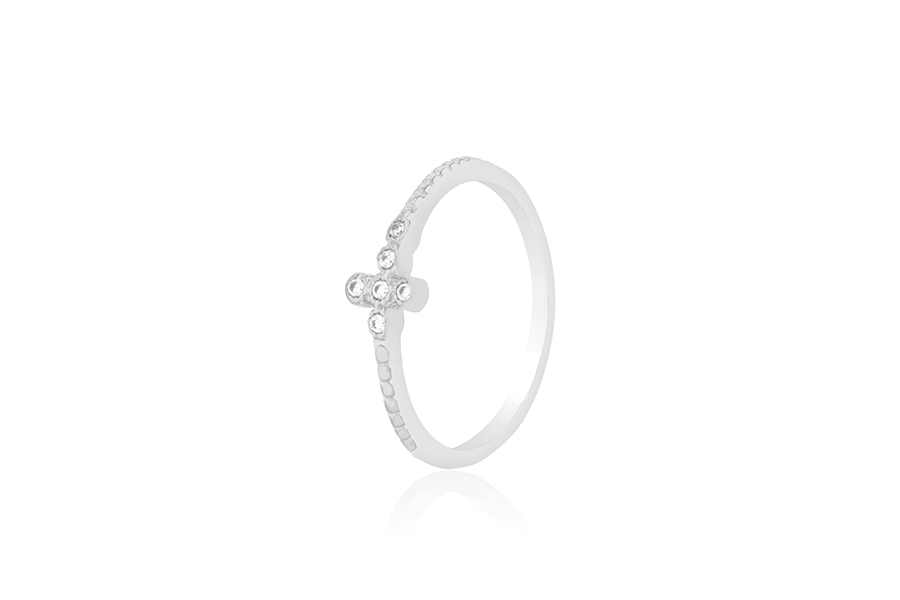 ANEL BANHADO EM RÓDIO BRANCO, CORAÇÃO 5mm LARGURA