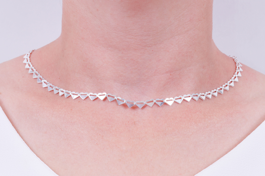 GARGANTILHA BANHADA EM OURO, ELO 1,50mm ESPESSURA, DUPLO PONTO DE LUZ 5mm E CORAÇÃO PATA 15,50mm LARGURA