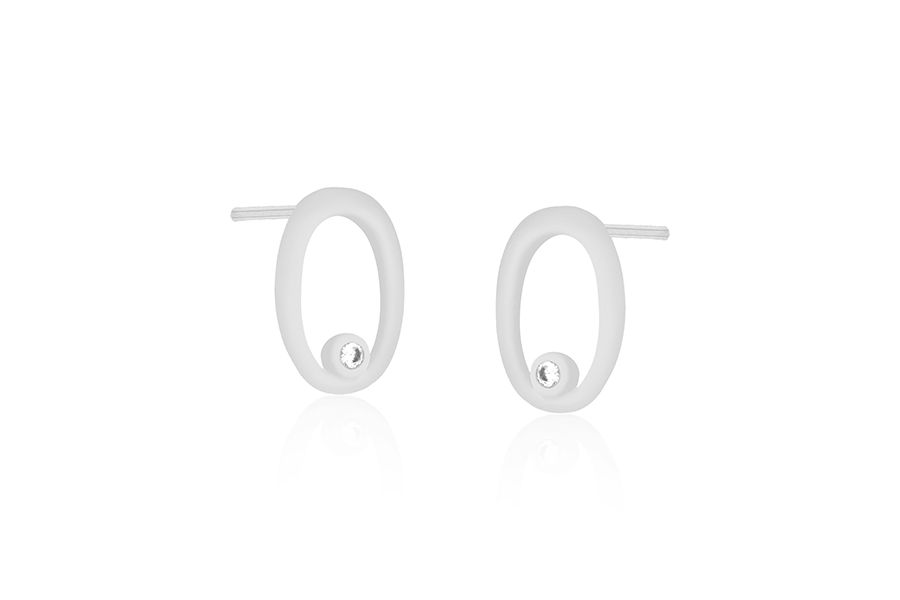 BRINCO BANHADO EM RÓDIO BRANCO, OLHO GREGO 4mm DIÂMETRO