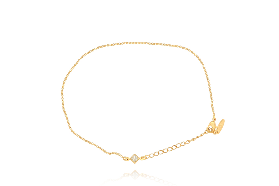 TORNOZELEIRA BANHADA EM OURO, ELO PORTUGUÊS 1,50mm, 23cm COMPRIMENTO E ZIRCÔNIA QUADRADA