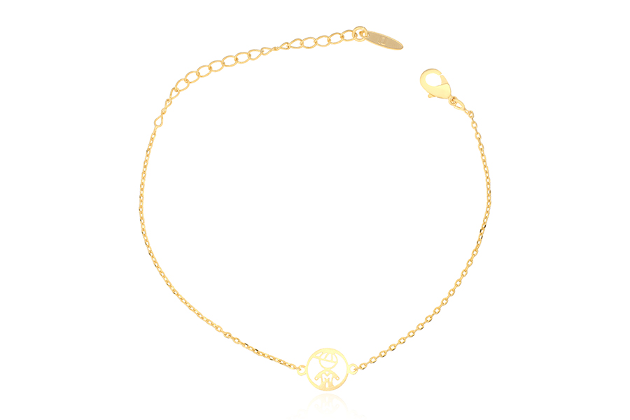 PULSEIRA BANHADA EM OURO, ELO PORTUGUÊS 3mm, ELO CORAÇÃO 4,20mm LARGURA, PINGENTE CORAÇÃO 11mm LARGURA COM MENINO